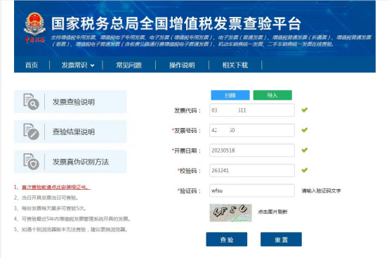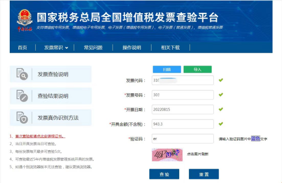 注:发票代码目前必须填写,否则会跳出提示“请输入正确发票号码”。