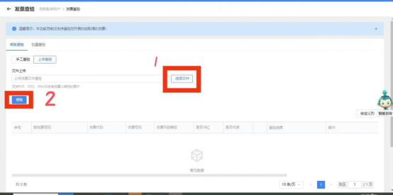 若选择【上传查验】,可通过【选择文件】上传PDF、OFD、XML和含有发票二维码的图片,然后点击【查验】。